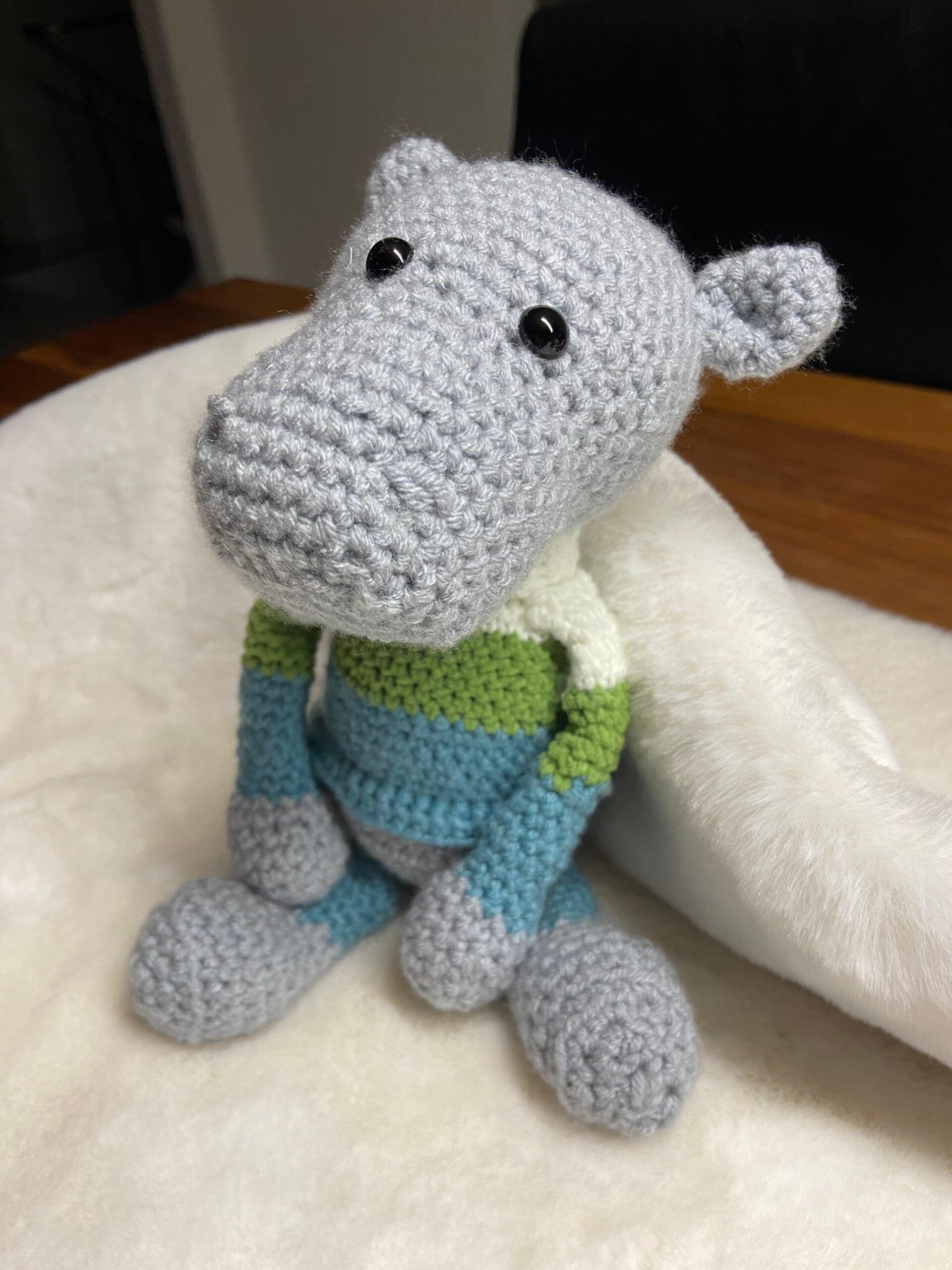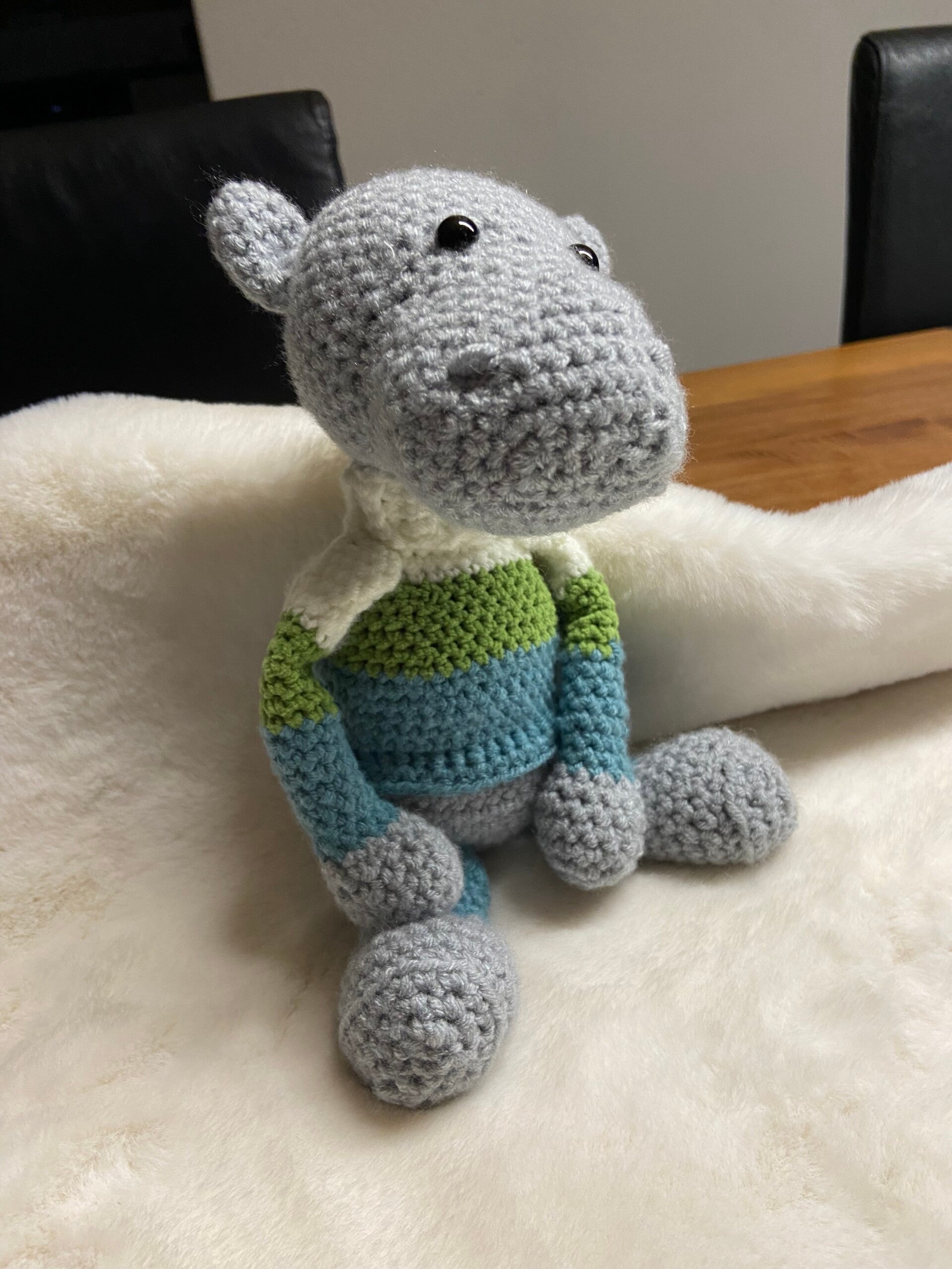 Klein weich und voller Liebe dieses handgemachte Nilpferd passt perfekt in kleine Kinderhände und wird schnell zum treuen Begleiter für dein Kind.