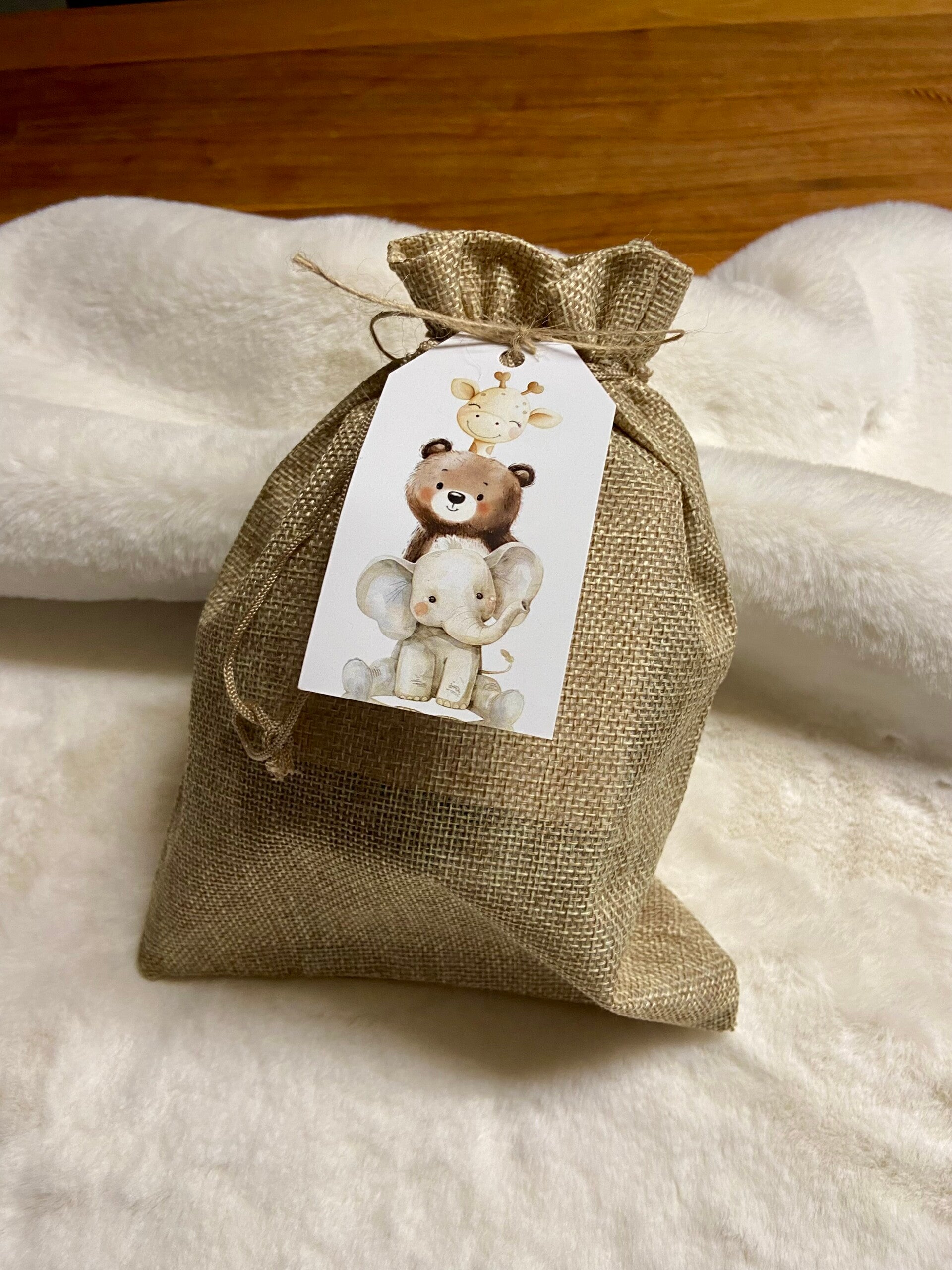 Jedes Schnuffeltuch wird liebevoll in einem Baumwolle-Jutebeutel verpackt